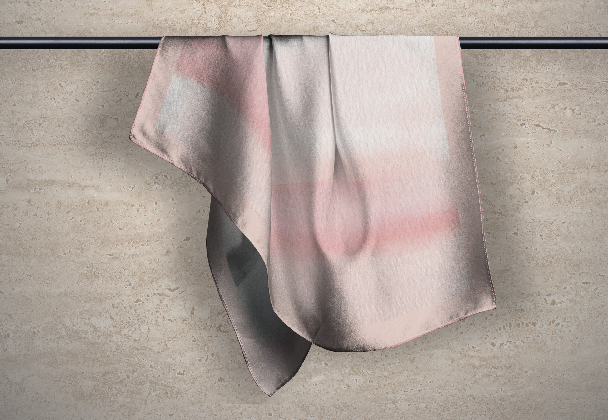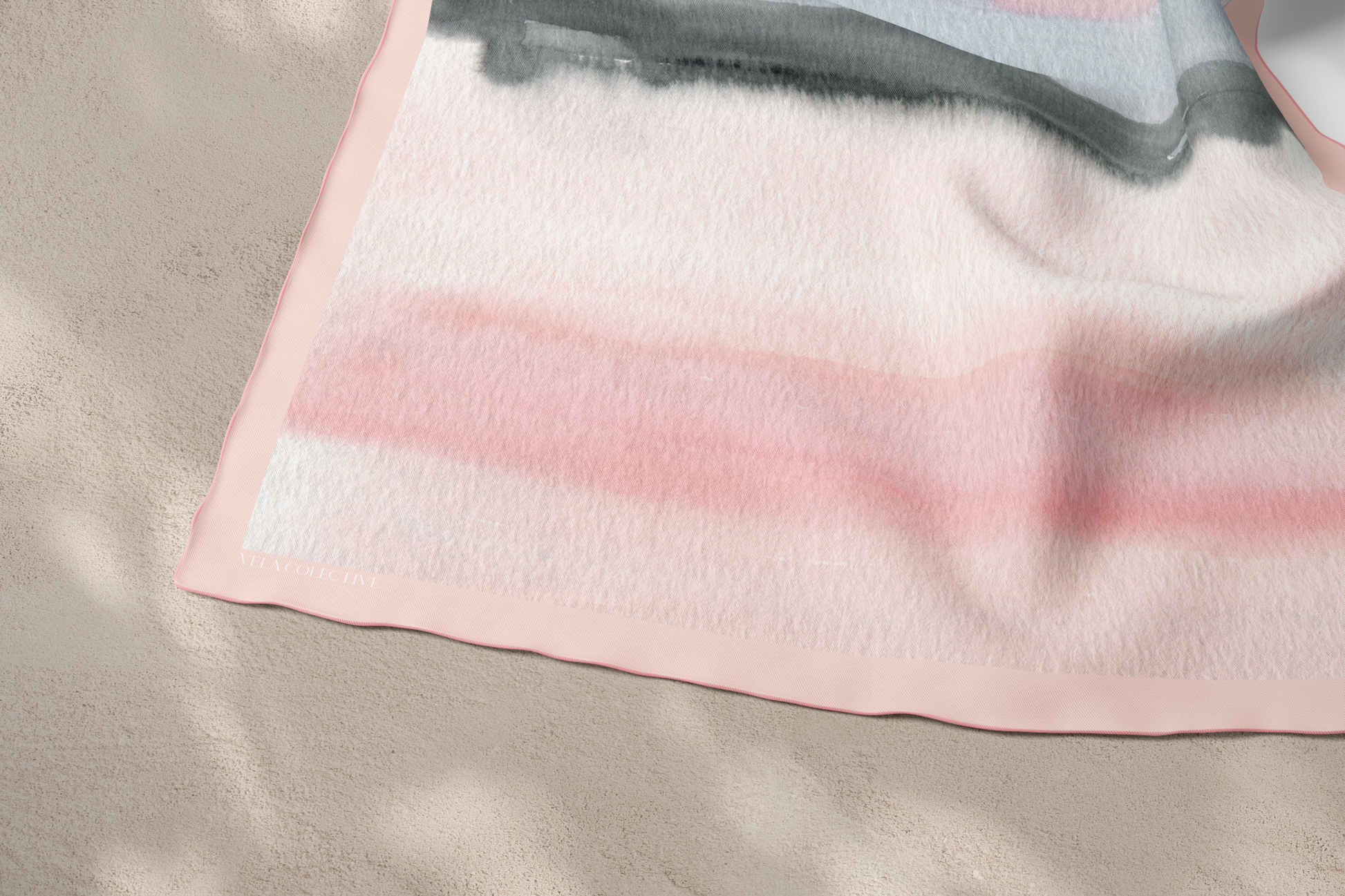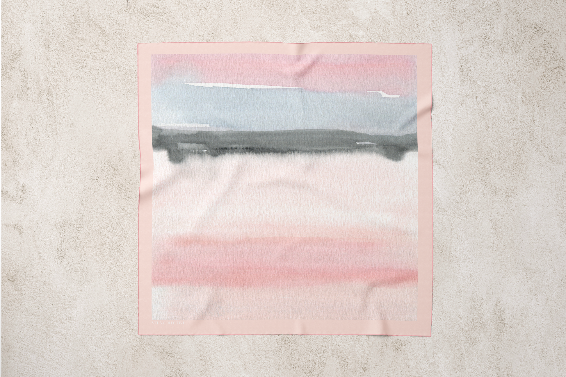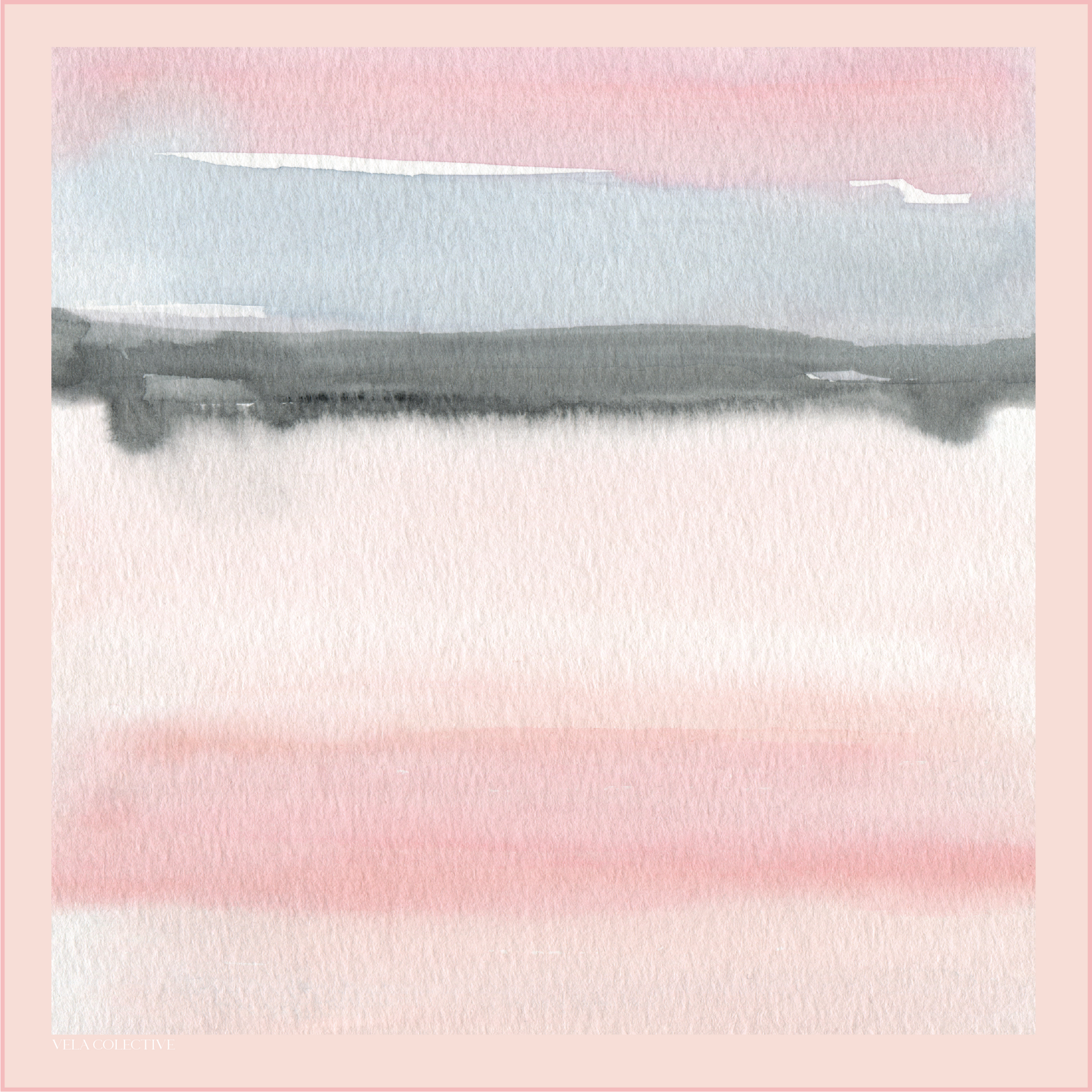 Soft blush pinks and gentle greys create a misty, pastel horizon with a calm, airy finish.